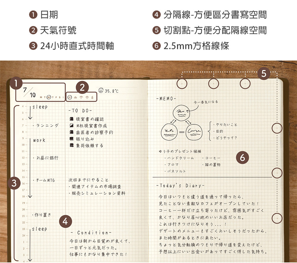 橫跨左右兩頁的「1日2頁」設計,保留原有的雙頁格式