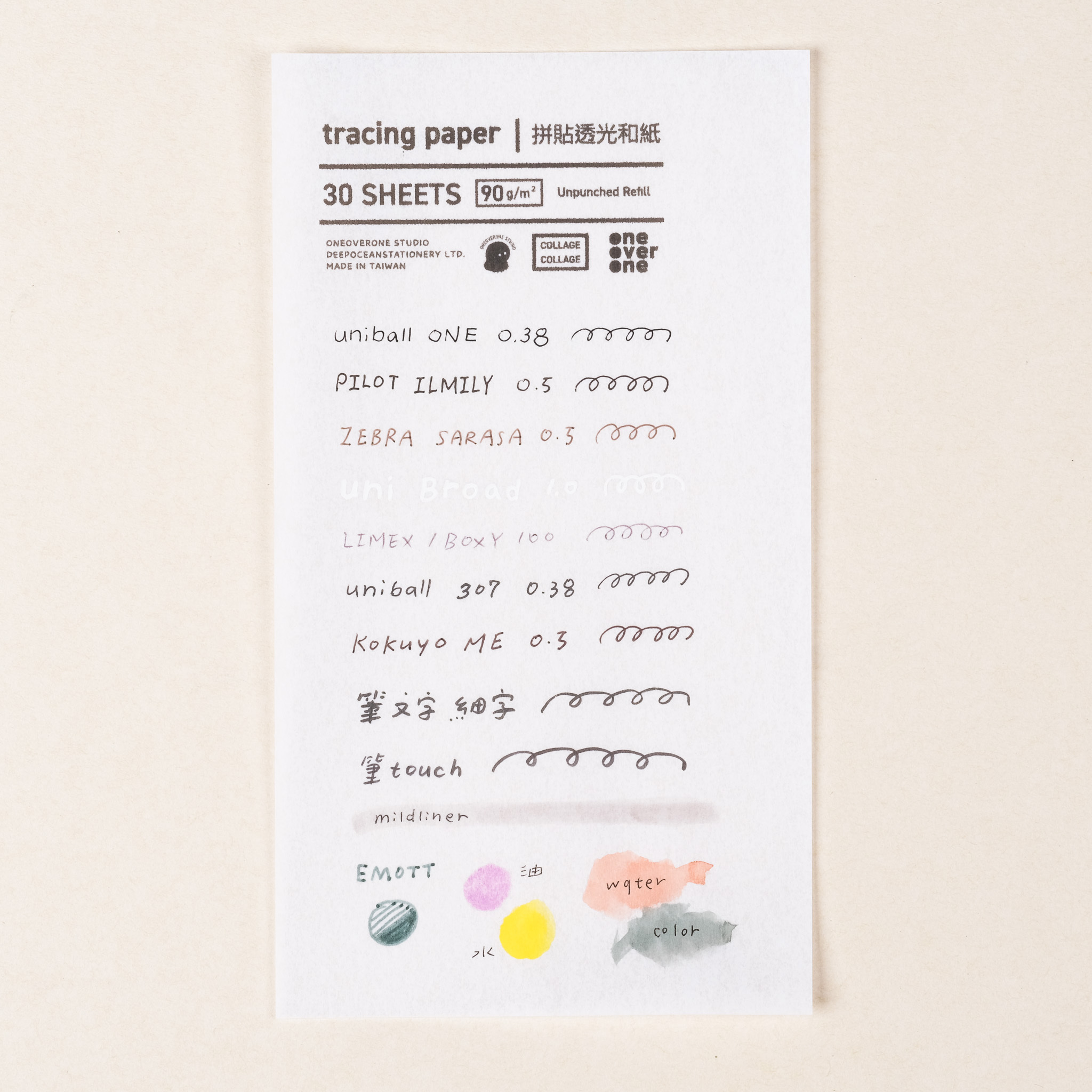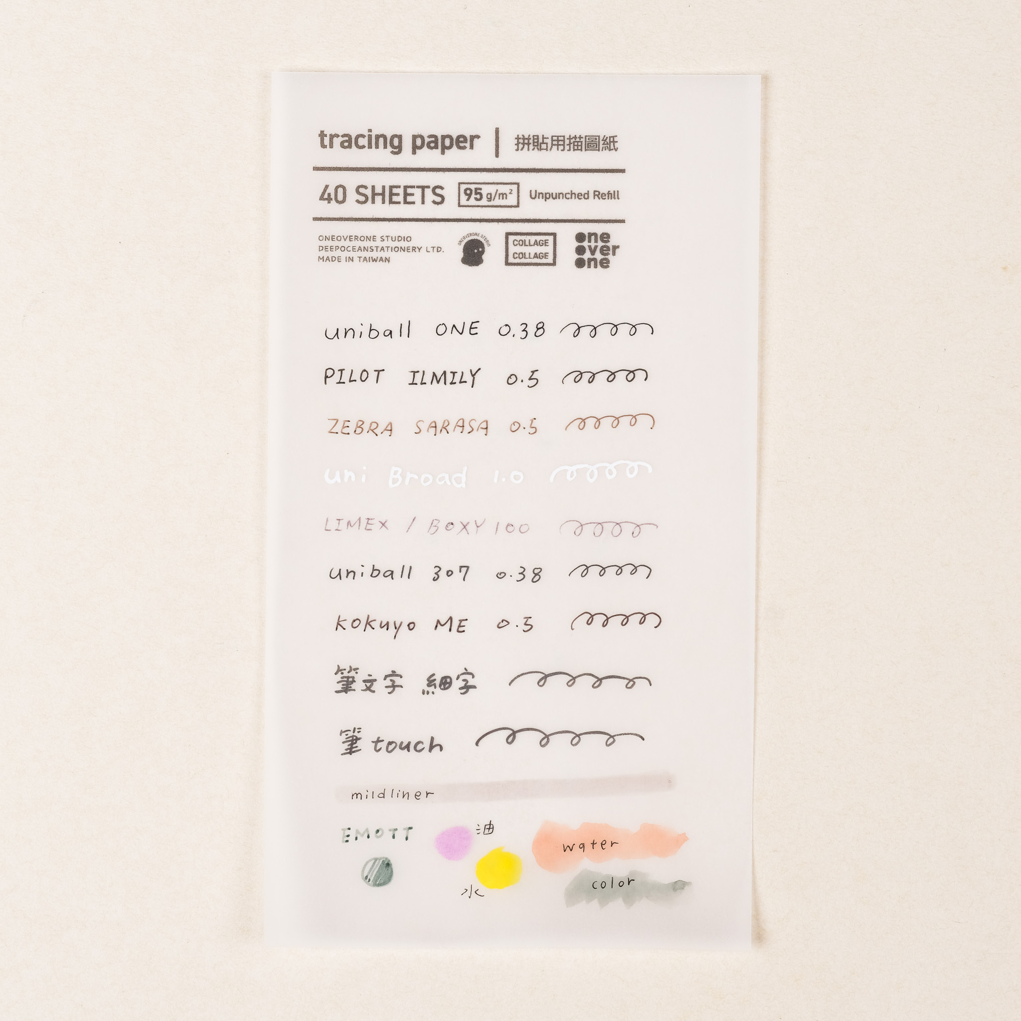 內有兩種描圖紙,適合用來當拼貼的素材,我們也有做紙張的測試供參考。