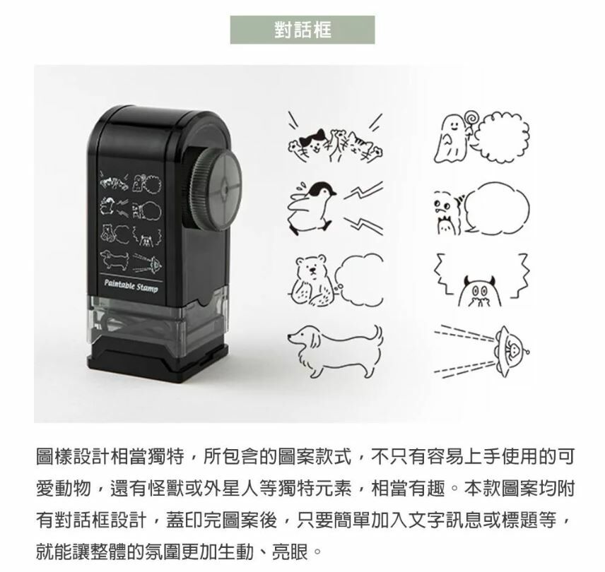 商品背板背面有日文使用說明、另外內附一張英文使用說明書。印台油墨為「油性」,乾後可以用水性筆著色,但油性印台手帳有極大機率會透墨,建議搭配其他印台使用,如果是單面手帳使用者就比較沒關係,總體來說是一款圖案可愛方便蓋印的商品。