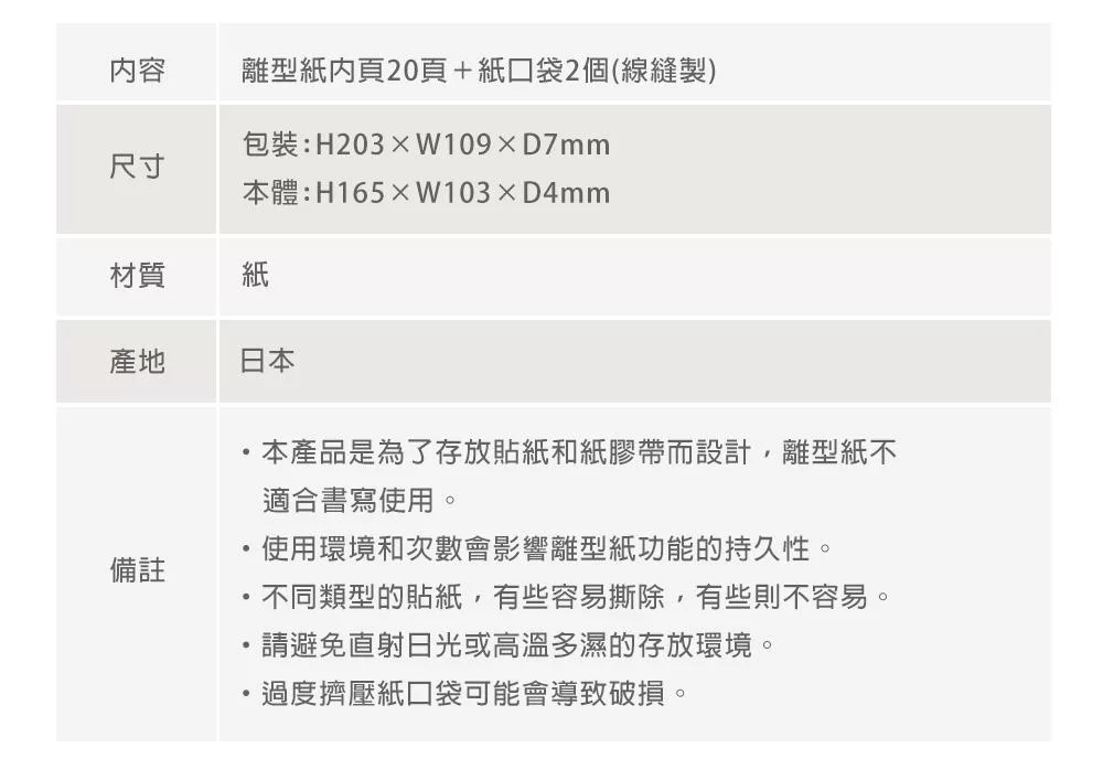 ※本產品適用於貼紙和紙膠帶的收納,貼紙冊內頁的紙無法書寫。