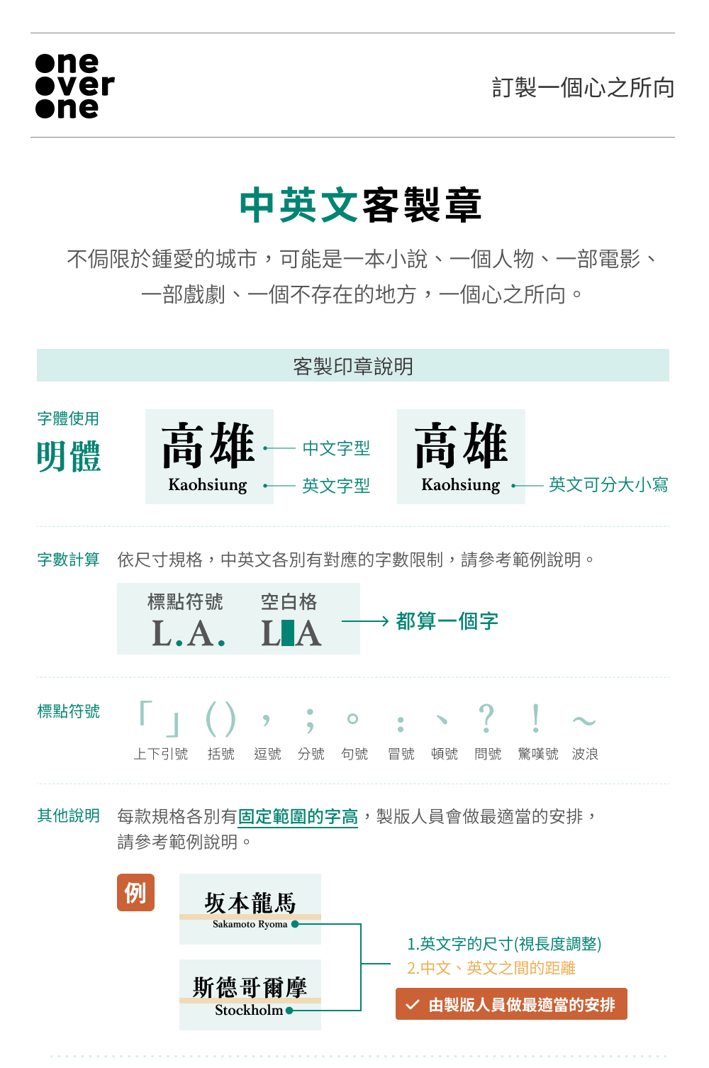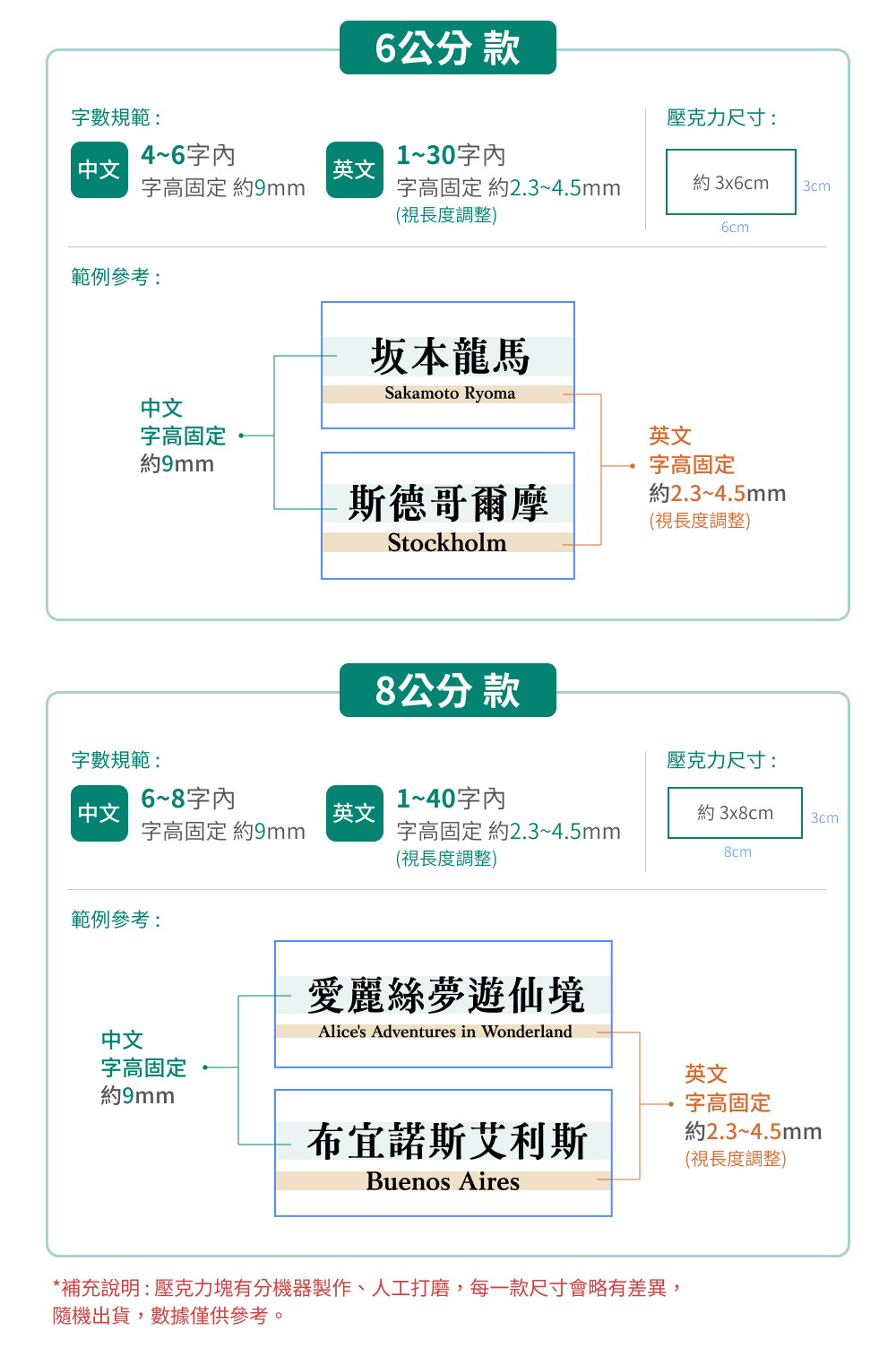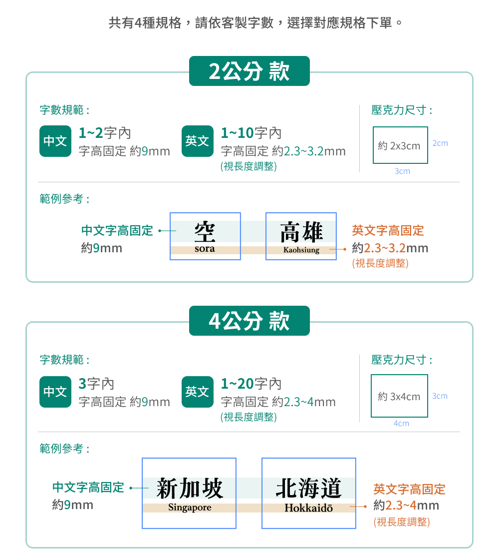 請依字數下單相對應的規格及數量。
