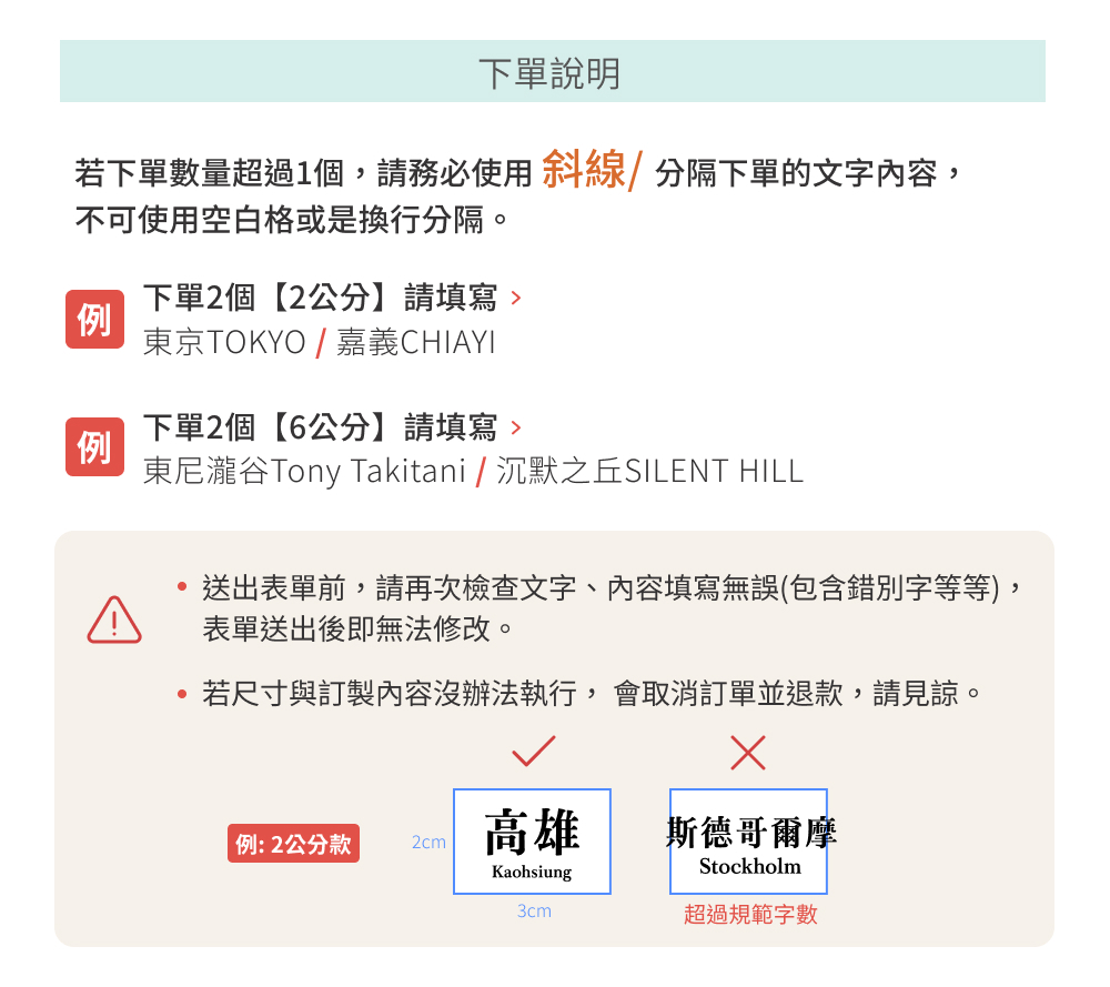 此為客製化賣場,下單後請至下方連結填寫客製表單,下單數量需與表單內填寫一致。